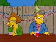 Bart learns that the couple have lost their jobs and shows remorse for them. Later Seymour apologizes to Bart for humiliating him, Bart encourages the former primary to stand up for himself. Seymour and Edna lock downwards the school, phone call the media and make their demands: They want their jobs back and the townspeople to non interfere with their relationship. Still, several residents (specifically Maude Flanders) rebuke with the accusation about the two having sexual intercourse in the janitor'south closet. Seymour insists nix of the sort happened and that he is a virgin. Everyone accepts the explanation, since no one would ever give false information about being a 44 yr old virgin. Chalmers agrees to reinstate Seymour and Edna every bit though nothing ever happened. The couple choose to continue their relationship more privately than always by disarming Bart that they have broken up afterward thanking him for helping them. Withal, in the last scene of the episode, they take sex in the janitor's closet.